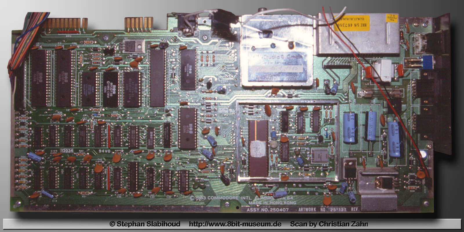 - the C64 'Version A' board (Assy no. 250407 - see immediate picture below) was the first to come with the 8-pin DIN video socket. All board versions prior to this had the 5-pin socket. The 8-pin socket provided seperate Y/V channels on top of the composite video and mono audio pins.