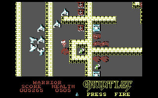 I used to play this game when I was about 5. Before the Super Nintendo, all I had was a good old Commodore 64. 64k, these days there are .GIFs larger easily larger than that. But Gauntlet was one of my favorite games. I would play it a lot. I never got real far, but these days it's nothing. As you may know, Gauntlet was an arcade game as well, then a newer arcade game, an N64 game, and now a "Next Generation" game as well. This though is the original version. Before graphics were a factor in games, this is how they were and this is the story about Gauntlet.