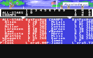 Once you've sorted out the teams then the game begins. The home team is always put into bat in the first innings, whilst the away team fields. Batting and fielding is all controlled through the joystick, and although being tricky (playing professional baseball for the first time always is) is mastered with a little practice.