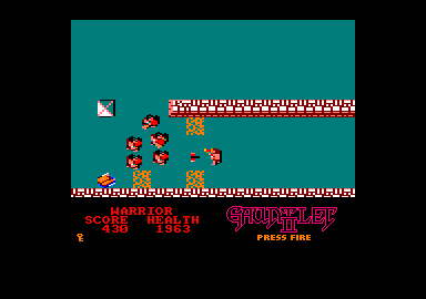 | Publisher: Genre: Author(s): Musician(s): Graphics Mode: Minimum Memory Required: Maximum Players: Joysticks: Language: Media Code: Media Type: Country of Release: Related Titles: Other Files: Comments: | U.S. Gold LtdAction Adventure Benn Daglish Game zone in Mode 0 (16 colours), Score zone in Mode 1 (4 colours) 64K 1-2 (simultaneous) Yes Eng N/A Audio cassette (£9.99) or 3'' floppy disk (£14.99) Europe Gauntlet Gauntlet 3: The Final Quest Game map, Game instructions Distributed by Erbe Software in Spain | Click to choose platform: Amstrad CPC Atari ST Commodore 64 Sinclair ZX Spectrum Commodore Amiga |