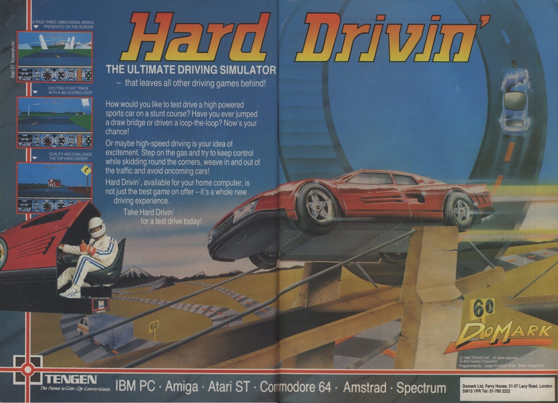 Shaun Neary (Unknown) 5th Mar 2014 04:35This is an arcade release that really shouldn't have been. The code was originally supposed for a driving school simulation the year beforehand. It was packaged in a cockpit style driving seat with realistic gears and steering. But it was aborted. Atari bought it's code, reworked the code a little bit and threw in a stunt track and released it to the arcade scene. Around this time US Gold struck their deal with Capcom, while Tengen and Domark merged and they too signed a big contract with Atari and this was one of their big licences. Hard Drivin' is then unleashed onto the 8 and 16 bit market. A lot of speculation on this conversion and if this can be pulled off on the home micro version without the stick, wheel and pedals. Although the same speculation about Operation Wolf and it's lack of having the gun was quickly sqauashed as well. So lets see what Domark have prepared for us to digest then!