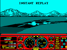 So how well does it all work together then? Well graphically it's abysmal really. A shameful speccy port graces us. These resemble Joe Blade, the hero best forgotten as far as dire spectrum graphics are concerned. Sound really doesn't help save the day either as there none on the 464 version that I tested. Thankfully I didn't have to wait a hell of a long time to load all this up. Six minutes and we were pretty much ready fo action. As far as the game itself was concerned I couldn't really fault Tengen for doing their level best to replicate the arcade original. It may seem a little slow to start off, It was in the arcade as well so I guess we can let this one slide. It can get on your nerves after time though. But whatever it lacks in presentation, it makes up for in the sheer fun and comedy provided with the stunt track and the instant replays. The bad thing here is that there isn't a hell of a lot more going for it when there could have been.
