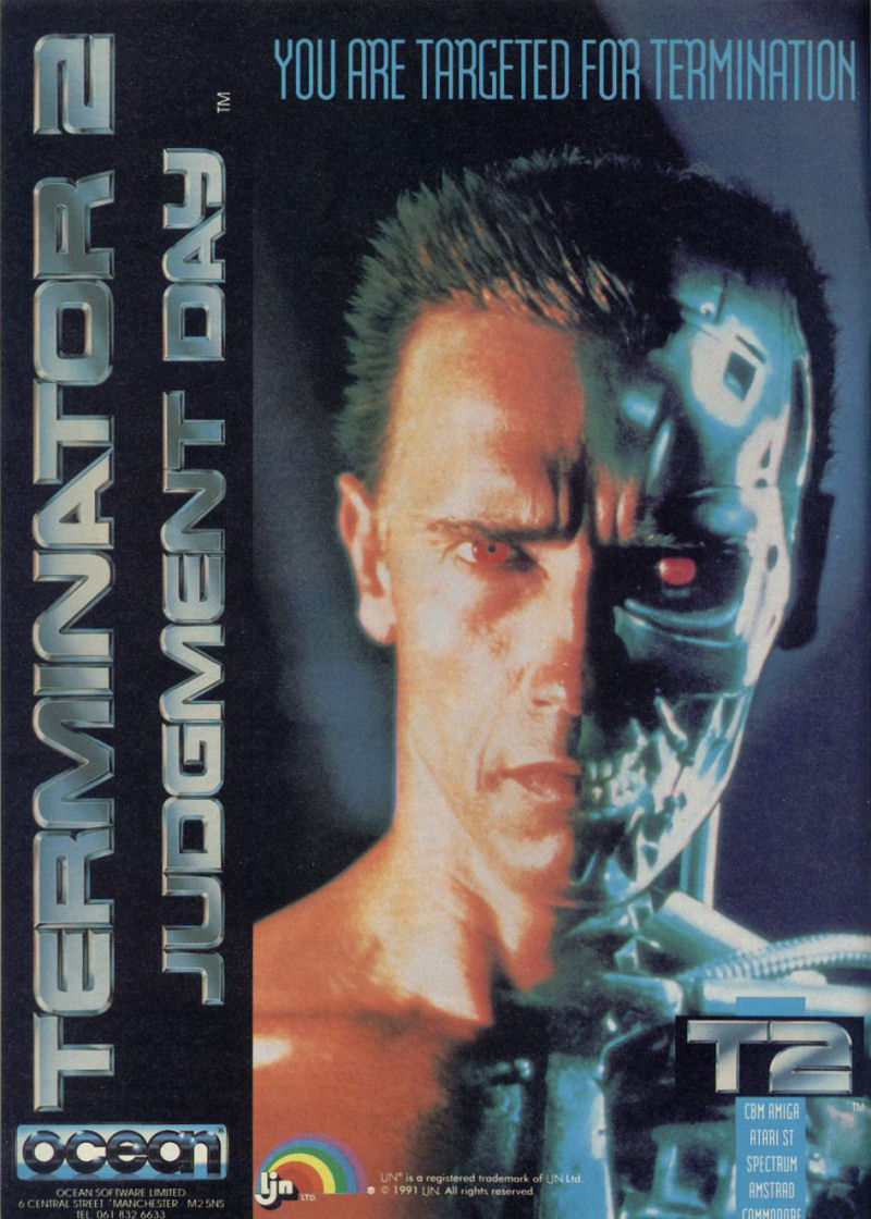 | Publisher: Genre: Author(s): Musician(s): Graphics Mode: Minimum Memory Required: Maximum Players: Joysticks: Language: Media Code: Media Type: Country of Release: Related Titles: Other Files: Comments: | Ocean Software LtdMiscellaneous Gary Priest, Kevin Bulmer, Dementia Jonathan Dunn 64K 1 Yes Eng N/A Audio cassette Europe Terminator 2: Judgment Day Advertisement | Click to choose platform: Amstrad CPC Atari ST Commodore 64 Sinclair ZX Spectrum Commodore Amiga More from other publishers: Nintendo NES Nintendo SNES Sega Game Gear |