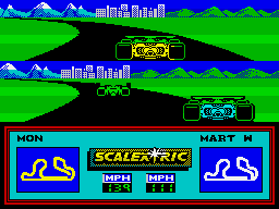As a bog standard race game, it's reet gradely, but having said all that, there are some things I wish the programmers had incorporated. It would've been very nice to be able to flip your cars off the track at the corners, 'cos for me that was half the fun of playing Scalextric in the first place. I'm sure this wouldn't have been much of a problem, and it would've made it more like the real thing.