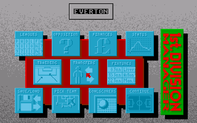| Publisher: Genre: Author(s): Musician(s): Minimum Memory Required: Maximum Players: Joysticks: Language: Media Code: Media Type: Country of Release: Other Files: Comments: | Codemasters LtdSport / Football Management Cirrus, Chris Chapman, Nik Sen, Brian Hartley, Shan Savage, Stewart Regan Allister Brimble 512K Yes Eng 3.5" Floppy disk Europe Game Manual | Click to choose platform: Amstrad CPC Atari ST Commodore 64 Sinclair ZX Spectrum Commodore Amiga |