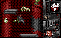 He can also fall off by having his cable cut by sawing ghosts. These customers attack the cable until destroyed by either the Proton beam or a PKR bomb. Bombs and shields can be collected during the descent by swinging the Ghostbuster from side to side and picking them up; bottles of elixir to restore courage are also collected in this way, as are the three parts of the scoop that are needed to get the slime. Make it to the bottom and fill the container with slime and you then go into the next section.