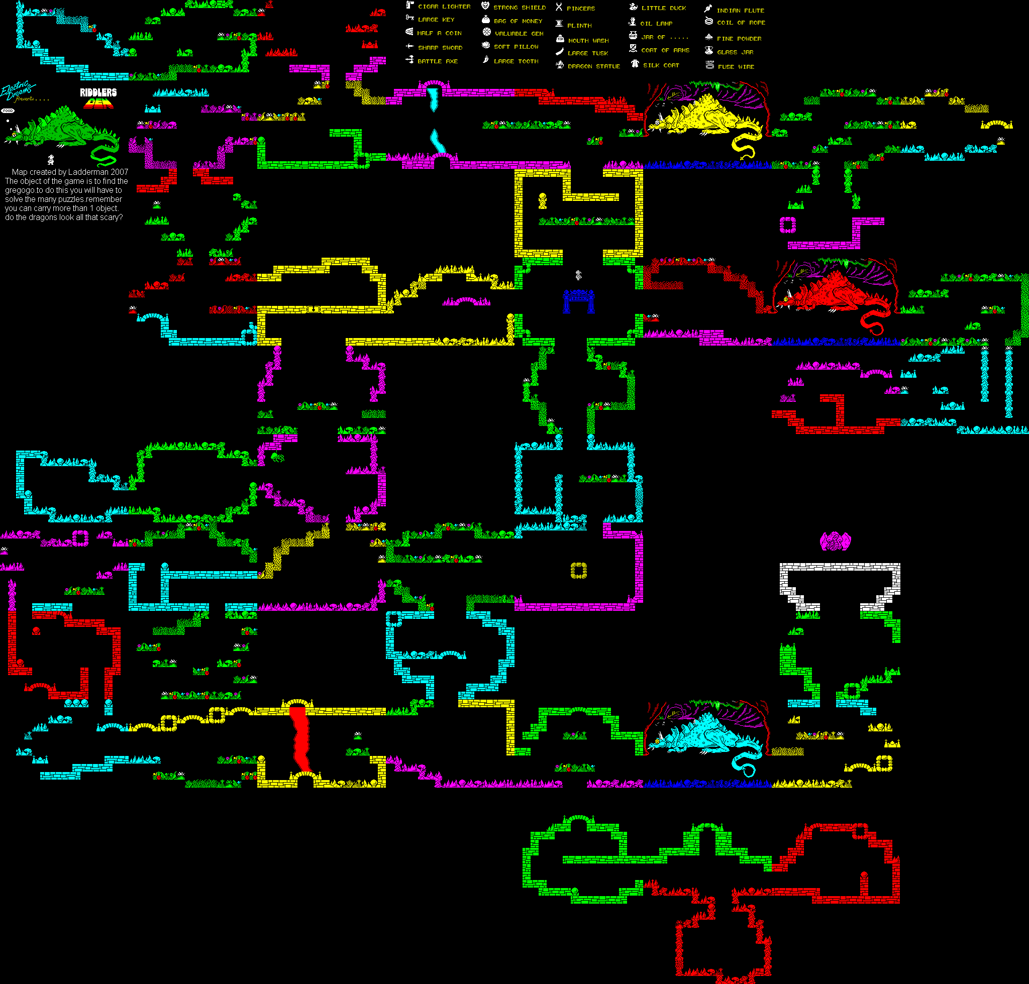 Unfortunately, some of the rooms are off limits until you find certain objects. The game map is split into three sections. The first, in the middle, contains the objects to get into the right-hand section.