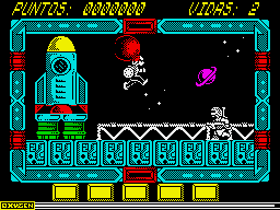 Of course you carry a weapon, a short-distance lance, and earn points for destroying aliens - patience and quick firing are important. And you can bound over the obstacles that block your path.