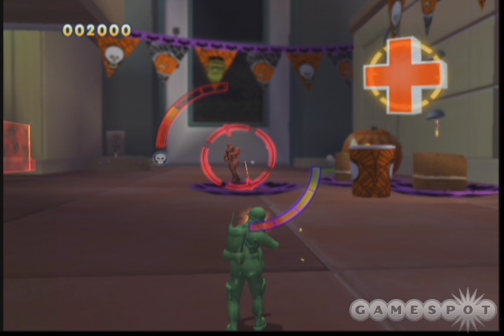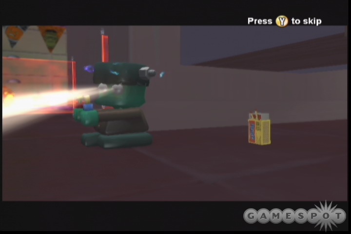 The first shock comes right with the intro movie: Sarge is dead, melted by a microwave. So, is an Army Men game without Sarge a real Army Men game? No. Hell, you don't even fight against the tan army but against “Major Malfunction”. What the f. His “army” is made up of Lego fighters, Duke Nukem fakes, Frankenstein robots etc. But back to the storyline. You play as Private Anderson and your mission is to find more out about the death of Sarge and the find a scientist. Overall the story is pretty basic. It is told in crappy cutscenes without voice acting, just subtitles and in text-based mission briefings.