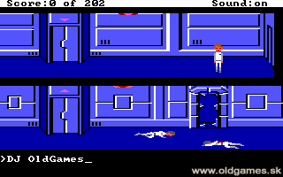 In Space Quest I, you play as Roger Wilco, a janitor aboard the spaceship Arcada. One minute, you're sleeping peacefully in a broom closet aboard the spaceship, and then suddenly aliens take over the ship, steal the very important star generator and kill every human on board. Wilco first has to get off the Arcada before it explodes, and then must travel through a desert to the spaceship Deltaur, where the vicious Sludge Vohaul is waiting for him. By today's standard the graphics in Space Quest I are obviously look bad, but remember back in the days when this game was only just released, the state of the art 16 colour graphics, and the great animation made this game a classic. From the dull blue colours of the Arcada to the light, bright surroundings of the planet of Kerona, all locations are well and contain a great deal of detail.