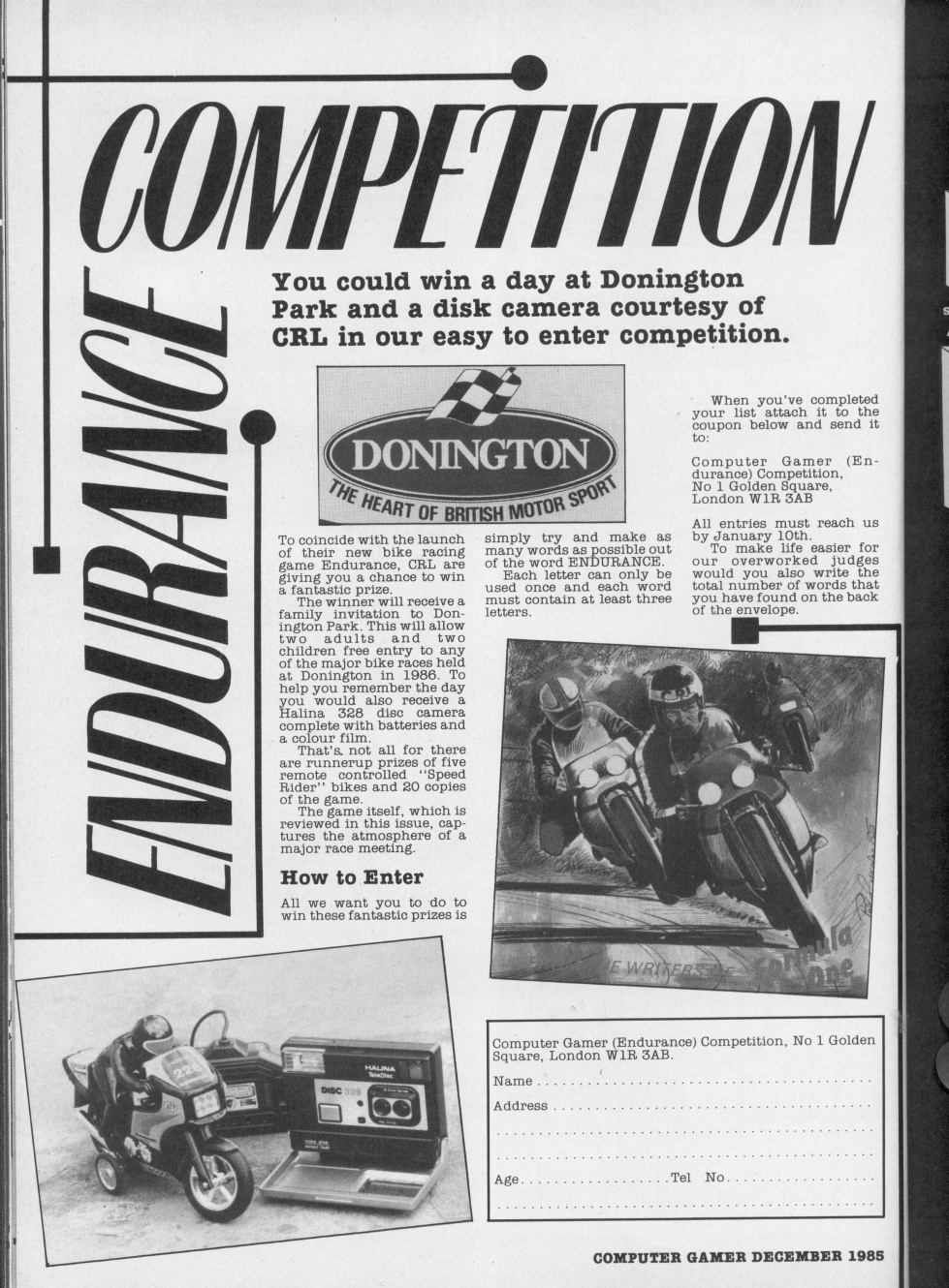 'Though initially seeming very tedious, badly programmed and on the whole, totally inept, I found that this game has a spark of addictivity once I gave it a go. It really brings out an urge to win in me. I don't know why, but even with the peeping and parping sounds and absolutely prehistoric graphics, I actually enjoyed Endurance. Real bike fans will probably enjoy the game even more. I wouldn't recommend anyone to run out and buy a copy now, now, now - but it's definitely worth taking a look at.'