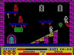 London certainly has some odd characters in it these days. From marauding Beefeaters to bottle lobbing Skin Heads, they're all there to hamper Slick in his mission. Each character has a different pattern in the game. They can open doors, throw objects, steal objects, follow Slick and generally hassle him every inch of the way. Every time Slick makes contact with a character in the game he looses some of his energy resulting in an inability to jump as high or as far as he could before. Some characters will even send him back to the start of the screen which he's currently exploring. Slick can also loose energy if he falls from a great height.