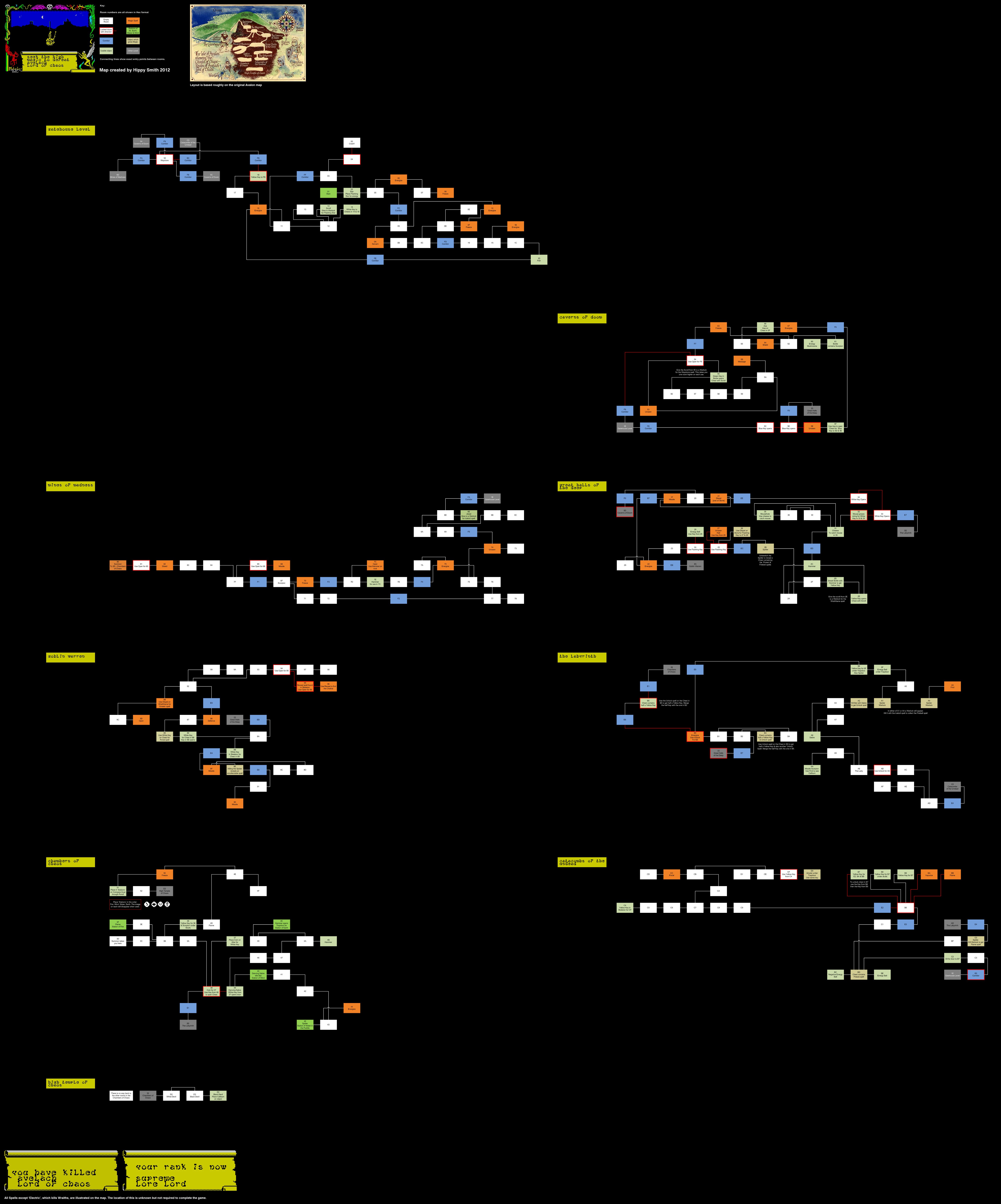 You play Maroc (the wizard) or rather his astral projection. There are sixteen ranks (skills) which are subdivided into eight stages, and at the start of a new game your status is the lowest, that of apprentice. Your advancement is gained by penetrating deeper into the dungeons and by collecting spells.