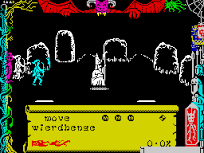 Graphics are not so clear as in the Ultimate arcade/adventures such as Atic Atac. However, the 3D representation of each room, with doors that really open, and the attempts at animation of monsters represent a bigger challenge than those earlier games tackled.