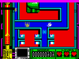 There are slides for when Things are looking down; conveyor belts for when he gets carried away; deadly pipes that can suck him in and shoot him all over the level; and doors to cut off his route of escape. Is it any wonder that, as well as the official exit from the screen, back into the tube system, there's also a Quit key for the easy way out!