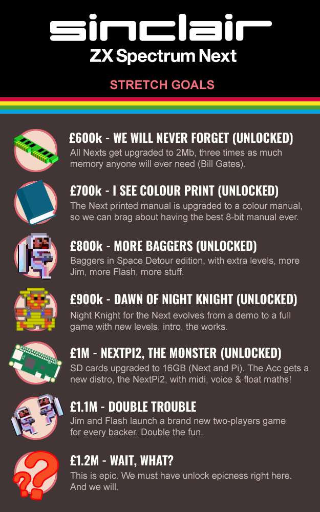 The fourth stretch goal was set at £500,000 which doubled the memory from 512KB to 1MB in each Next sold.