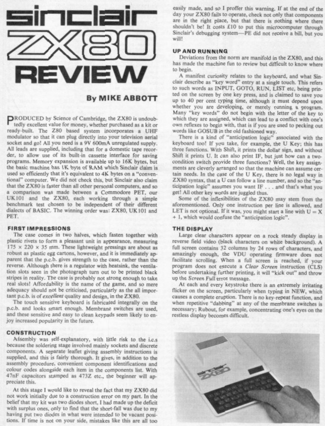ZX80 Review (Page 1 of 4) from Everyday Electronics, July 1980